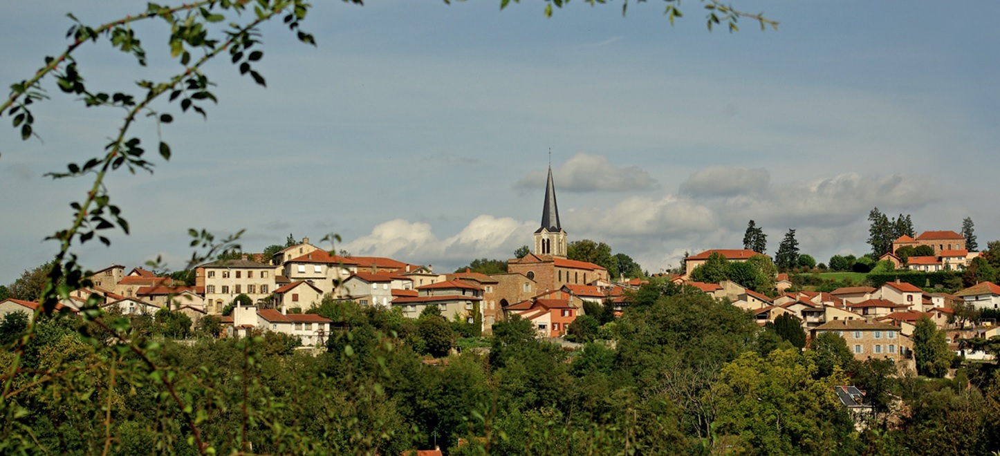 Construit sur une butte d’argile, les constructions de ce village, porte d'entrée du Beaujolais, s’ordonnent autour de la tour de l’ancien donjon et les vestiges du château. |