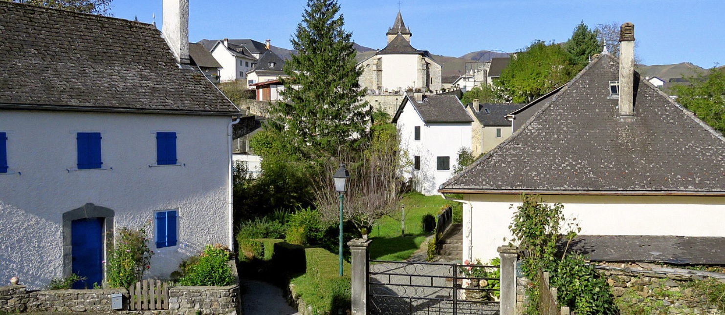 Aux confins de la Haute Soule, au pied du pic d'Orhi, le petit village montagnard est bâti sur un plateau, typiquement basque aux rues tortueuses et aux maisons groupées autour de son église et du fronton de pelote. |
