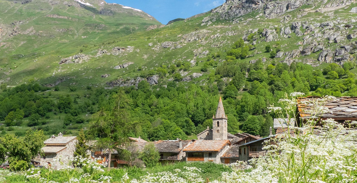 Entre le Parc National de la Vanoise en France et celui du Grand Paradis en Italie, le village domine les grands espaces. |