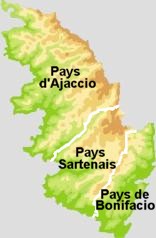 A l'ouest de la Corse, la région d'Ajaccio s'étend autour de son golfe, le plus vaste de l'île. Pris en tenaille par la montagne aux formes adoucies, le golfe d'Ajaccio présente un rivage rectiligne au nord, échancré de ports, plages, anses, criques et ponctué de tours génoises au sud. L'arrière pays est formé de moyennes montagnes propices à l'arboriculture fruitière, à la vigne, aux cultures maraîchères ainsi qu'à l'élevage. La végétation naturelle est le maquis associant chênes verts, chênes lièges et aulnes aux fourrés d'arbousiers et oliviers sauvages. |