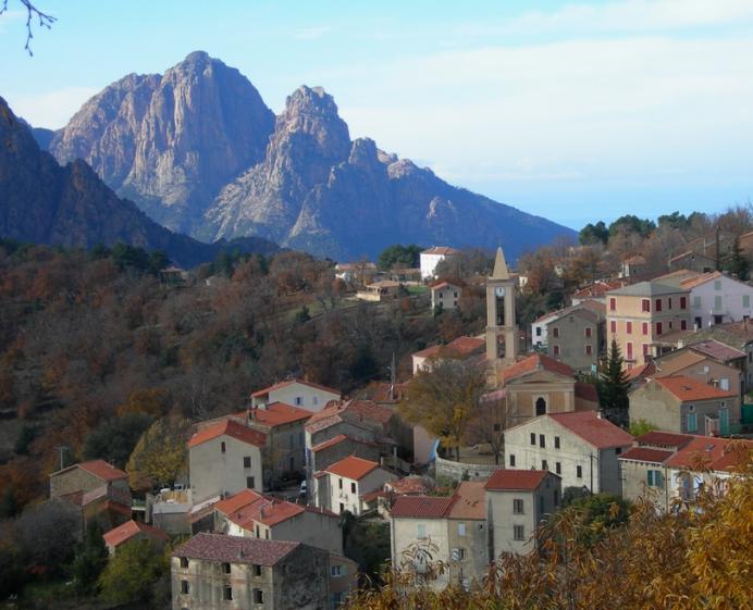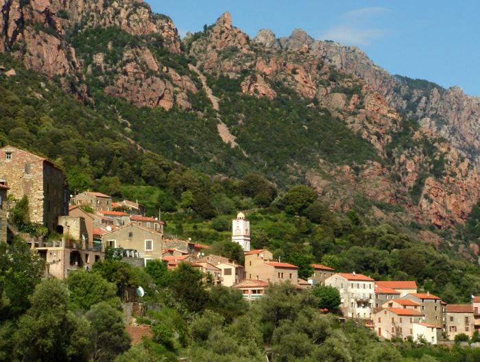sauvages, ce gros bourg est perché au dessus de la vallée du Liamone.