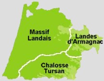 Cette région aussi appelée Grande Lande englobe en partie le parc naturel régional des Landes de Gascogne créé en 1970. Ce territoire occupe le coeur du massif forestier gascon que drainent la Petite et la Grande Leyre. Il se caractérise par la distribution et l'originalité de son habitat traditionnel. Dans ces solitudes boisées, l'étonnement peut jaillir : églises placées sur l'itinéraire de St Jacques de Compostelle, château, maisons d'architecture typiquement landaise, etc ... Site à découvrir : |