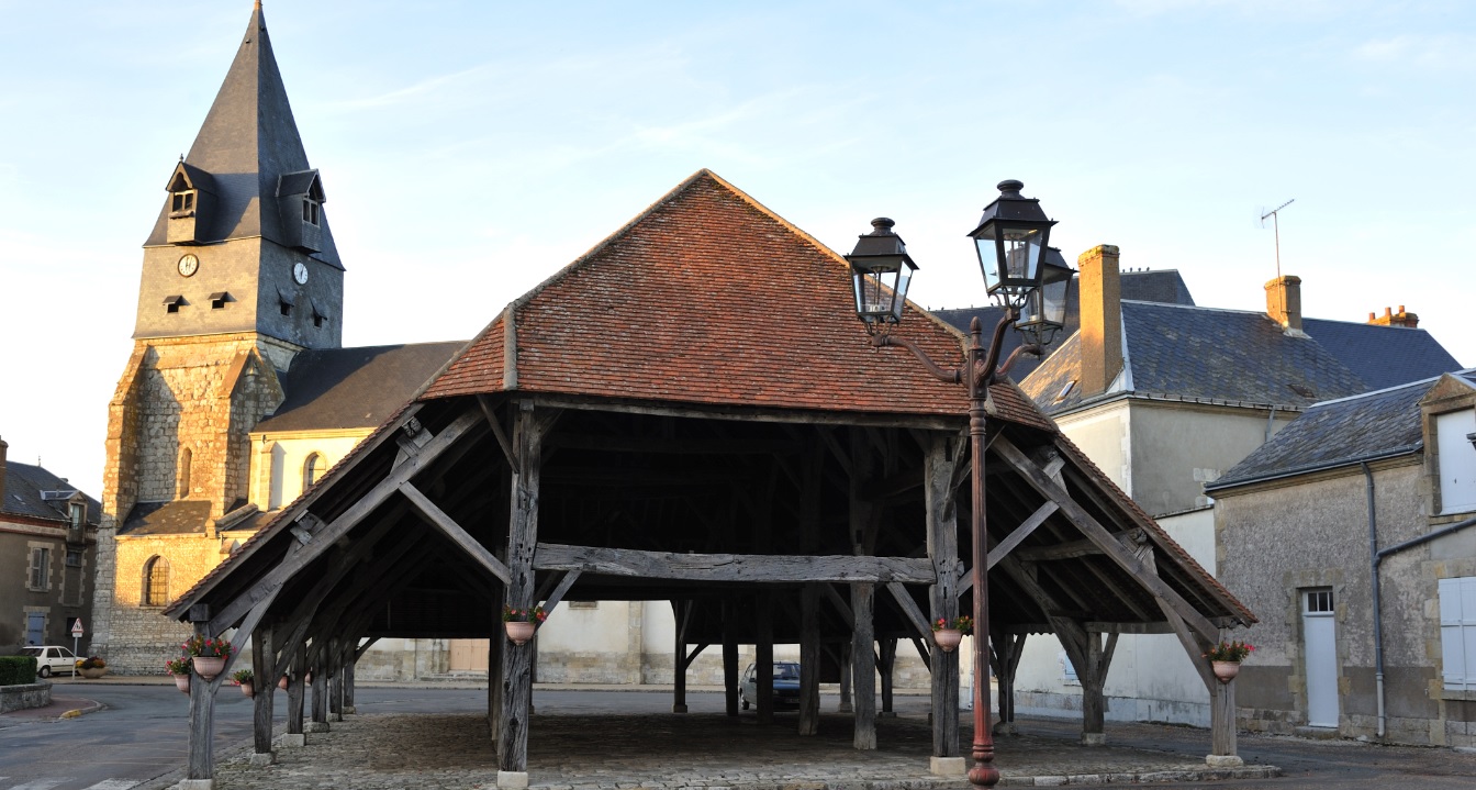 Aschères le Marché (Texte Miguel Bravo) : tout dans ce village de la Beauce du sucre évoque l’activité commerçante ancestrale, sa large place, sa halle, ses ruelles. Une plaque au-dessus du portail du château de Rougemont (appartenant à la famille Fénélon au XVIIIe siècle) rappelle que « Louis XIII a soupé et gîté ici le 29 janvier 1637 ». Ancien marché au grain, la belle halle en bois au toit coiffé de tuiles plates est des XIIIe et XIVe siècles. Elle a été remanié au XIXe siècle et restaurée récemment grâce à une association. Le clocher ainsi que l’abside de l’église Notre-Dame sont du XIIIe siècle, le reste de l’église date du XIXe siècle. |