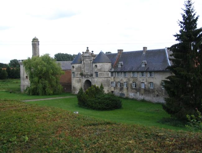 Esnes (Photo Françoise Lévêque) : niché au milieu des vastes plaines céréalières, le village s'étire sur les deux rives d'un petit affluent de l'Escaut, pompeusement baptisé le Torrent d'Esnes. Le site abritait déjà un campement dans l'antiquité, et l'on peut encore voir près de l'église du XIIe siècle, les vestiges de deux tombes mérovingiennes datant de la première dynastie des Francs. Sur la rive opposée se dresse le château du village. Il a conservé son apparence féodale avec ses deux tours du XVe siècle qui encadrent l'entrée et sa grosse tour crénelée des XIIIe et XIVe siècles que prolonge la tourelle de l'horloge. Le château est ouvbbc9b81eert au public à la belle saison. |
