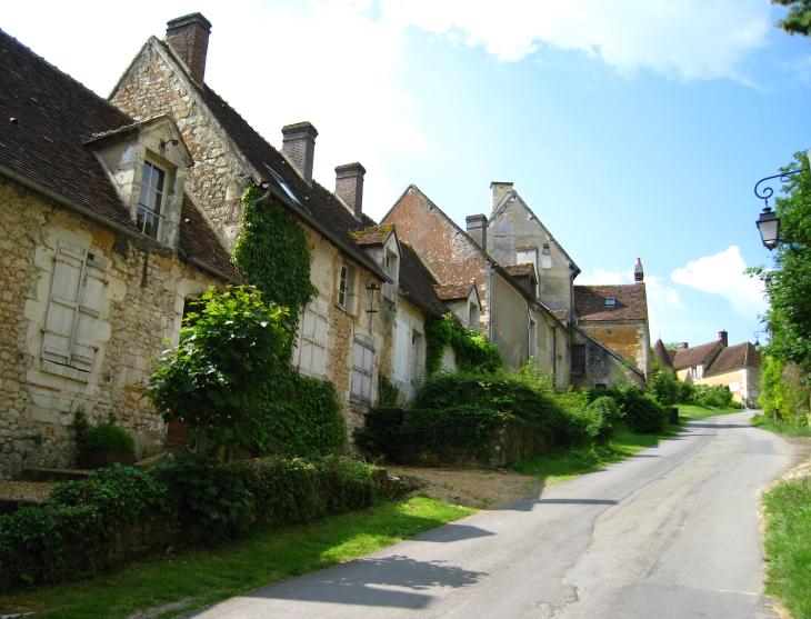 | Villeray (Photo André Zella) : le village est né d'une forteresse bâtie au XIe siècle. Ses deux tours rondes, coiffées d'un toit en poivrière, encadrent une porte cochère. Les maisons petites et basses, en moellons de calcaire enduits de chaux et de sable du Perche subtilement colorés, s'étagent le long de la forte pente de l'unique et étroite rue du village. Dans la partie haute, les maisons sont cossues d'où on remarquera quelques fenêtres à meneaux. |