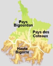 Cette haute région englobe le Lavedan mais aussi la vallée d'Aure et les Baronnies au pied des montagnes. Les paysages y sont très verts et montagneux, où prennent source nombre de ruisseaux qui deviendront rivières ou fleuves. De nombreux petits villages réservent aux visiteurs leurs richesses rurales et architecturales à découvrir. |