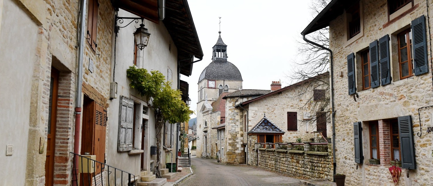 Agréablement niché au pied du Revermont, Meillonnas fut construit autour de son château. Vieux village typique avec son clocher à bulbe, il a fière allure avec ses belles maisons de pierres parfois à colombages. Cet ancien bourg au plan rectangulaire, doit sa renommée à la faïence que l'on y fabriqua à partir de 1760. Il faut voir encore dans ce village l'église St Oyen, bel édifice d'origine gothique couvert d'une ample toiture à petites tuiles. Centres