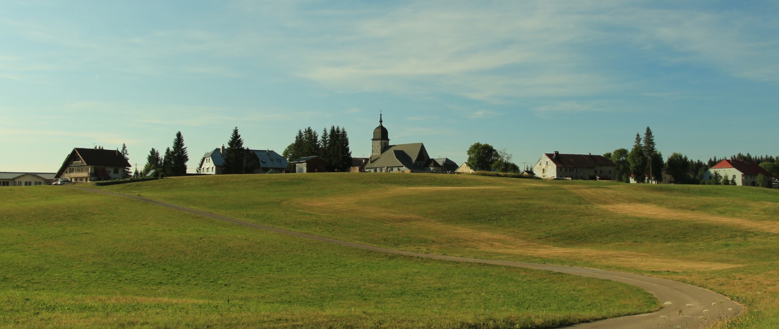 Niché dans une combe à priori hostile, c'est un village verdoyant au décor de carte postale au pied de la barre rocheuse du Risoux. |
