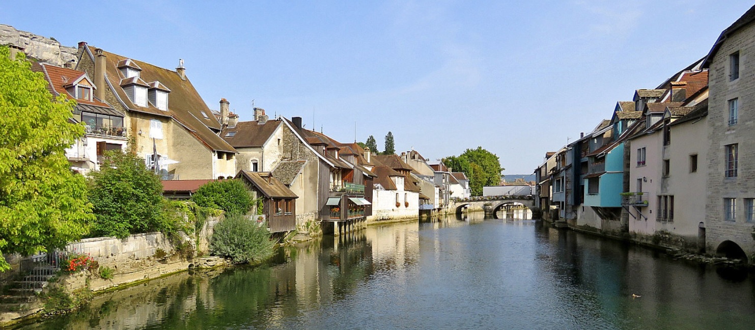 Blottie dans un écrin de verdure au coeur de la vallée de la Loue, la ville est surnommée la petite Venise comtoise en référence à ses maisons pittoresques sur pilotis. |