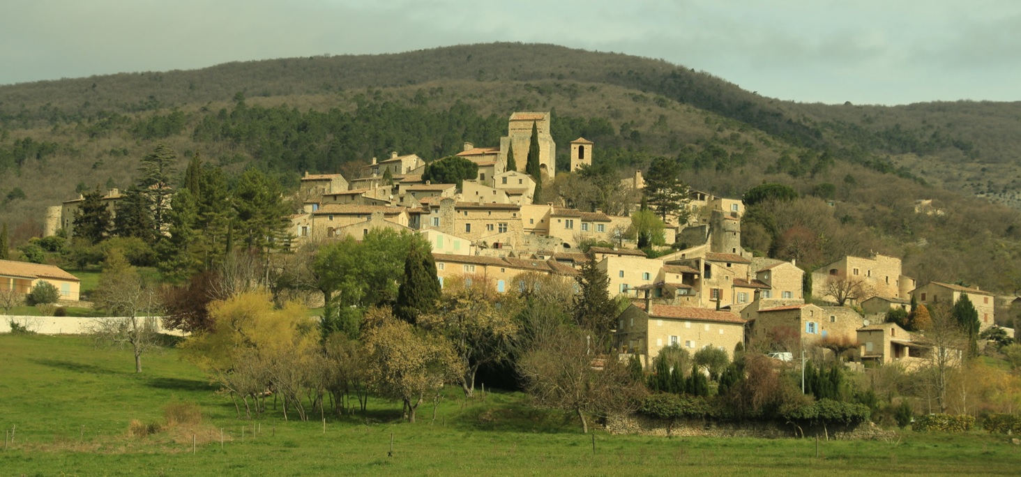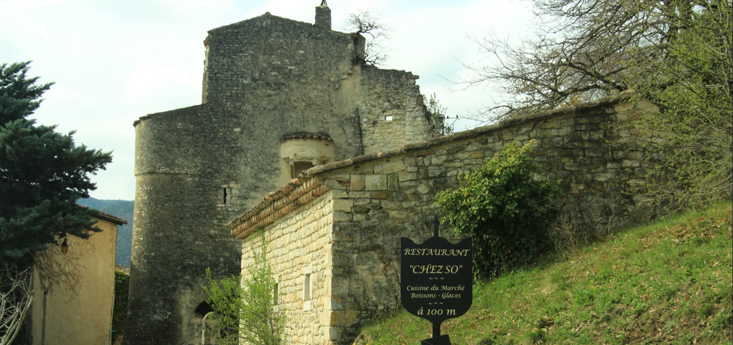 Sur un site escarpé de la vallée du Jabron, ce village médiéval à plan triangulaire s'inscrit dans un superbe panorama de contreforts boisés. Son ensemble architectural d'une sévère sobriété est entre autres constitué des vestiges d'un imposant château qui fut, à l'époque des croisades, une résidence des hospitaliers de St Jean de Jérusalem. Le village fut édifié pour l'essentiel il y a plus de 800 ans par les hospitaliers et fortifié pour servir d'étape et de refuge aux pèlerins qui partaient pour la Terre Sainte. Construit au XIIe siècle puis remanié aux XIIIe et XVe siècles, le château du village fut saccagé et en grande partie démantelé au moment de la Révolution. Mais son donjon avec son toit en pente simple est cependant demeuré à peu près intact. Centres
