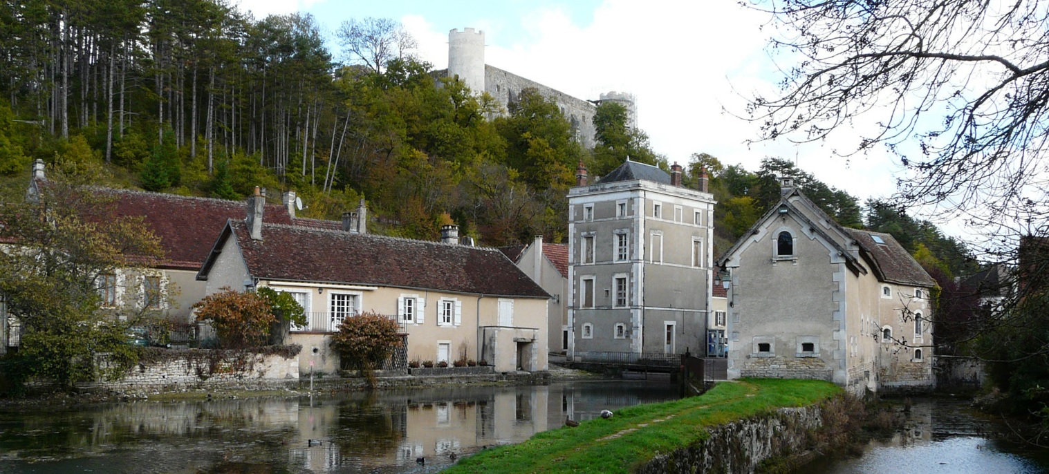 Ce magnifique village est composé de deux sites distincts : d’une part, la ville haute posée sur le rocher dont le caractère naturel et l’environnement sont remarquablement conservés avec la porte fortifiée de la ville, le château médiéval, ses ruelles pittoresques, ses vieilles maisons typiques, qui font la fierté du lieu. D’autre part, le bourg, partie basse, construit à proximité des sources qui révèlent d’autres aspects du village avec son église romane du XIIe siècle, son lavoir du XIXe siècle, la grotte de St Romain, ses sources et son lac, sa guinguette, espace de verdure et de sérénité propice à la détente. À proximité, le viaduc du XIXe siècle enjambe la vallée et offre un point de vue panoramique sur le village. Centres