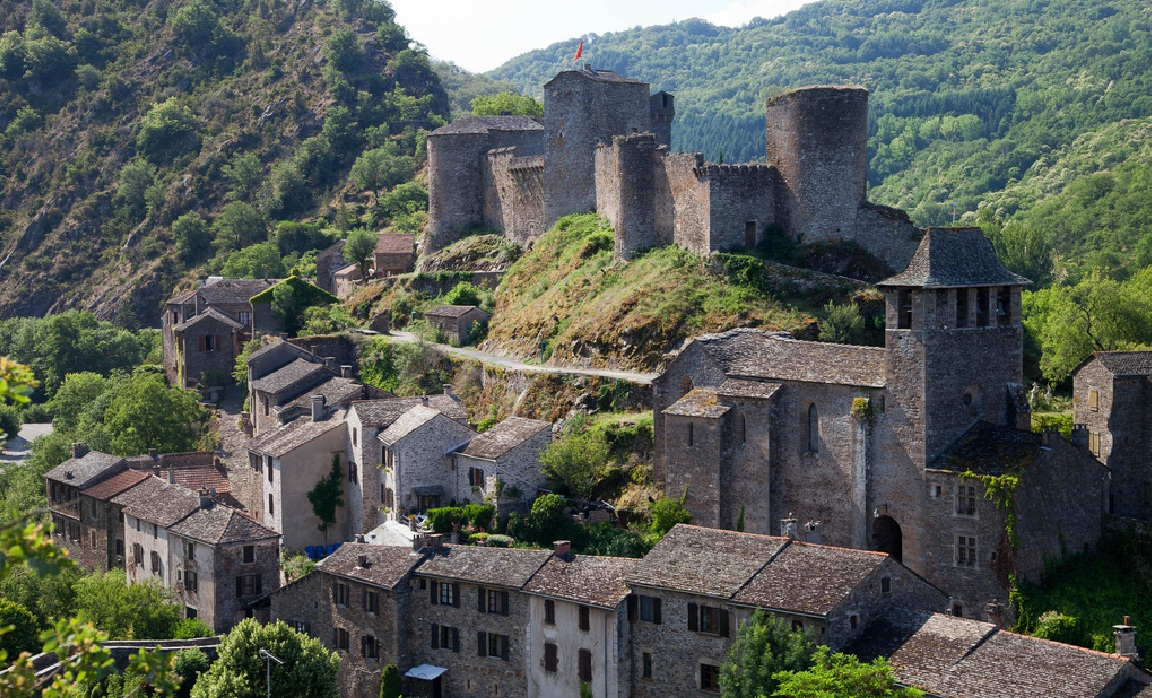 Vieux village perché sur un éperon rocheux, le bourg est dominé par la silhouette imposante de son château médiéval. |