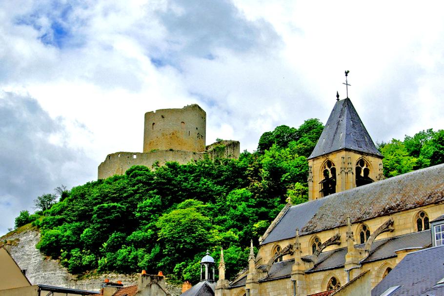 Blottie au pied des ruines d'une forteresse du XIIe siècle érigée au sommet d'une falaise de craie, la cité monte la garde sur la vallée de la Seine depuis plus de dix siècles. |