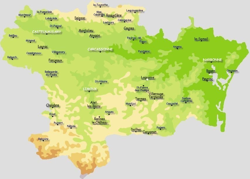 Aux alentours, visitez bien sûr le joyau de la région la cité de Carcassonne à quelques pas du village, mais découvrez aussi au sud les châteaux cathares de St Pierre des Champs, Termes, Peyrepertuse, et Quéribus. Allez découvrir également l'abbaye de Fontfroide en direction de Narbonne. Faites une halte enfin dans l'autre vignoble du côté de Minerve. |