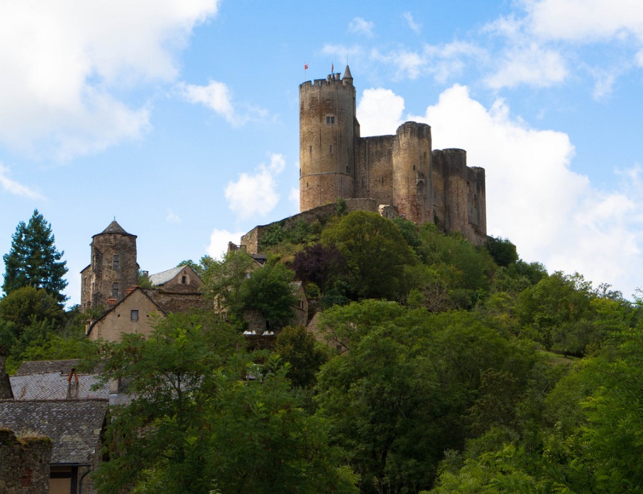Simple tour carrée au XIIe siècle, le château de Najac devient une forteresse au XIIIe siècle, sur ordonnance du roi St Louis. Sa position stratégique, qui en fait le verrou de la vallée, lui vaut une histoire mouvementée. Rois de France et d'Angleterre, comtes de Toulouse, protestants et croquants convoitent longtemps cette "clef de tout le pays". Des tours rondes, la vue plonge sur la vallée de l'Aveyron et sur les toits de lauze. Convertis à l'hérésie cathare dans les années 1200, les habitants sont condamnés par les inquisiteurs à bâtir à leurs frais l'église St Jean. Par son art ogival méridional, elle constitue l'une des premières églises gothiques du Rouergue. De la même époque, les maisons du bourg s'étirent sur la crête rocheuse au pied du château. On pourra admirer aussi deux superbes fontaines dont l'une possède une vasque de granit monolithique. Centres